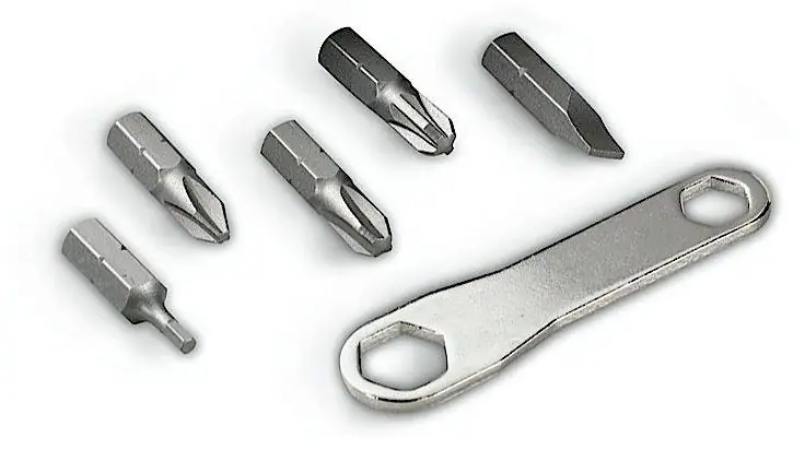 6-delige multi tool voor het aanpassen van ski’s en andere uitrustingen.