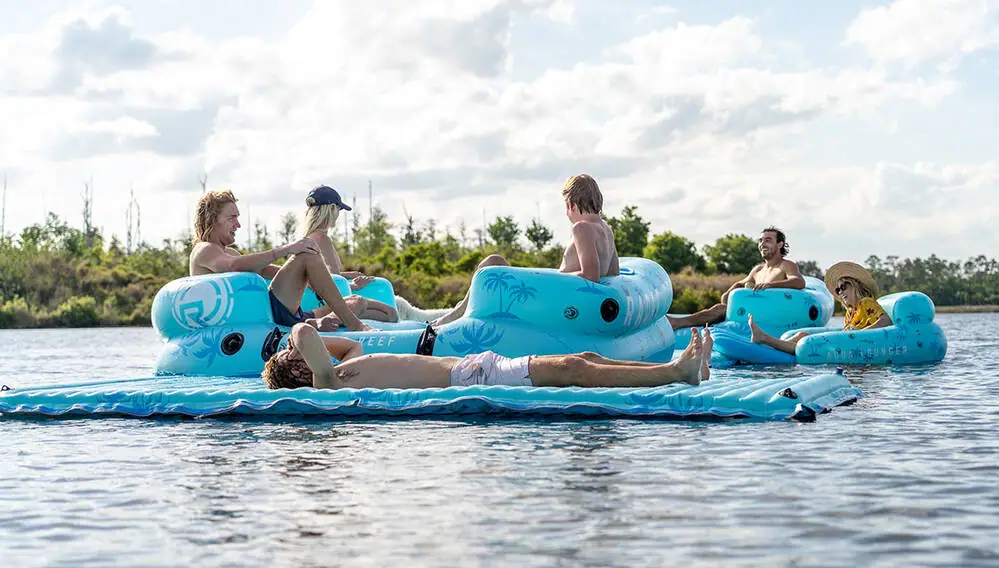 The Could Water Mat by Radar is an inflatable floating mat you can use for whatever you want when having a good time at the shore or the pool. Use it as a platform for sunbathing, yoga or simply for playing and splashing around the water.