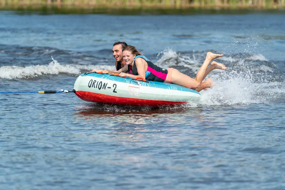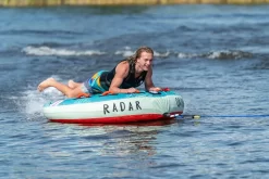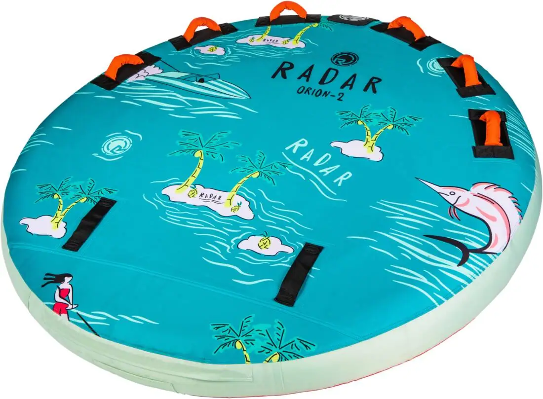 This is a classic water tube with a soft top to enhance comfort on bumpy rides. The Orion is designed with handles for up to two persons.