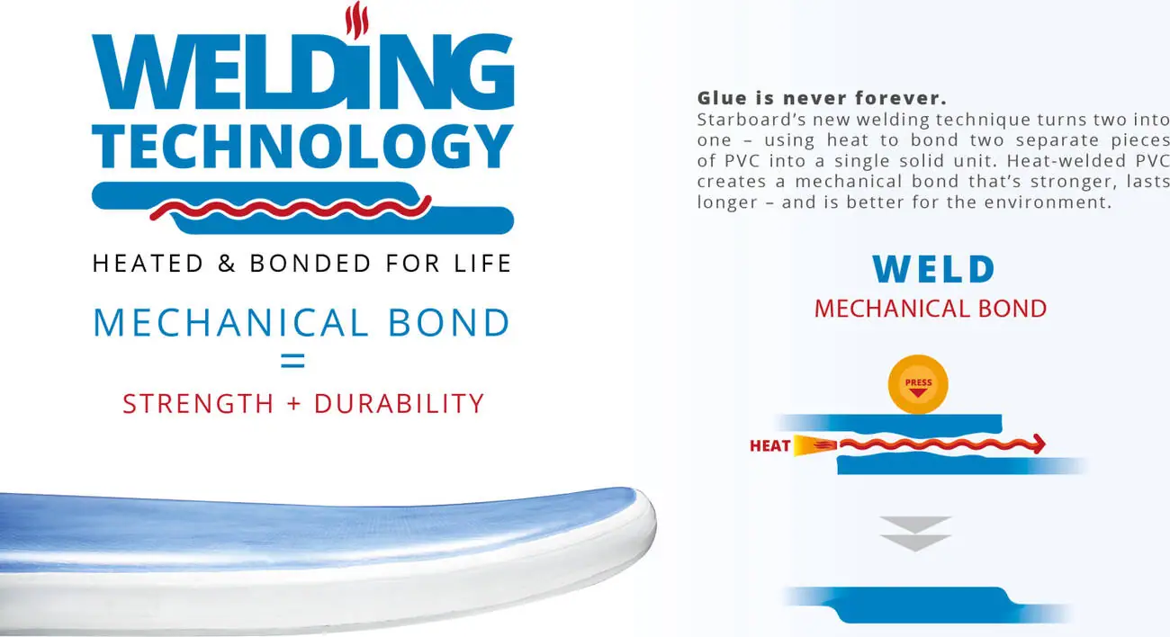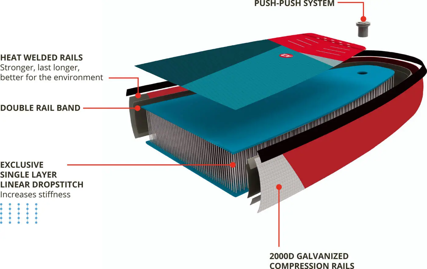 - Super strong and stiff thanks to its linear drop-stitch and heat-welded rails